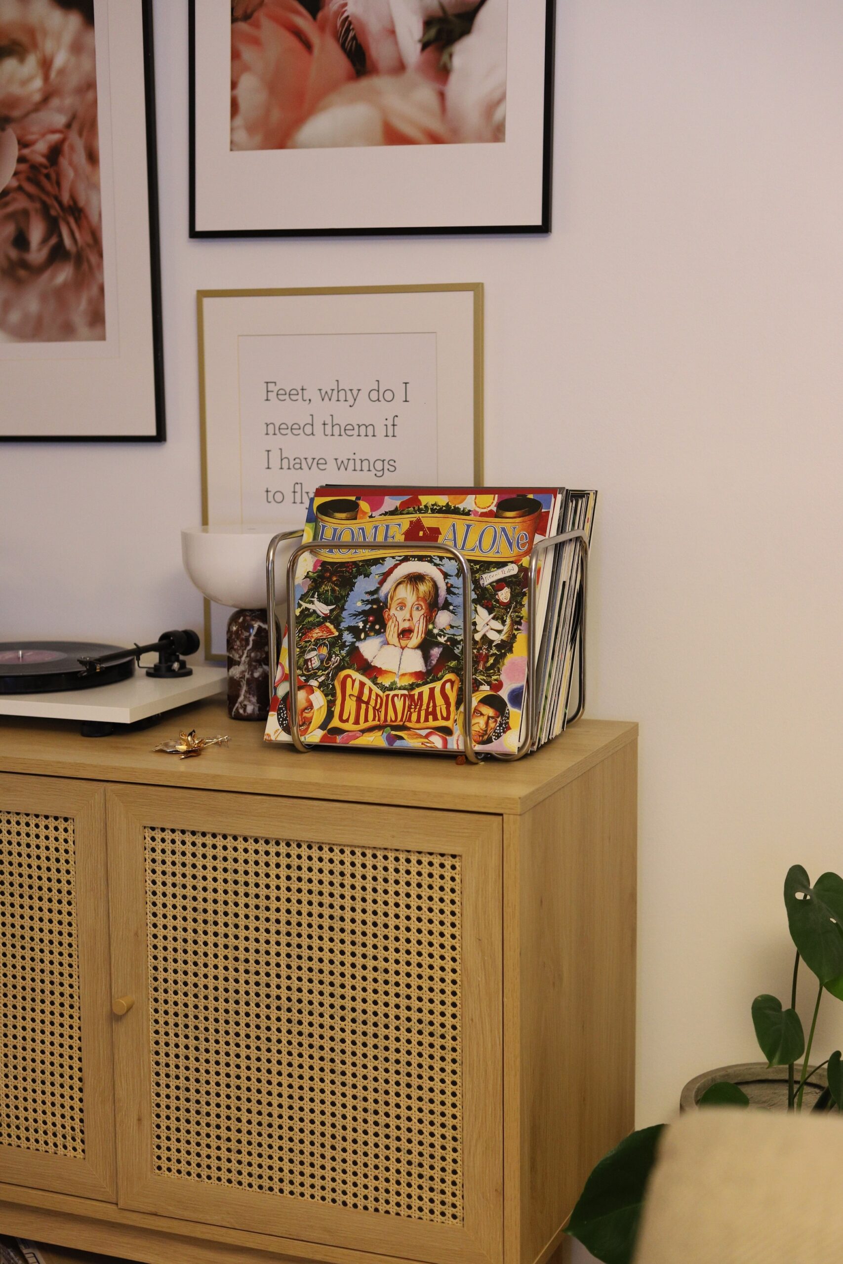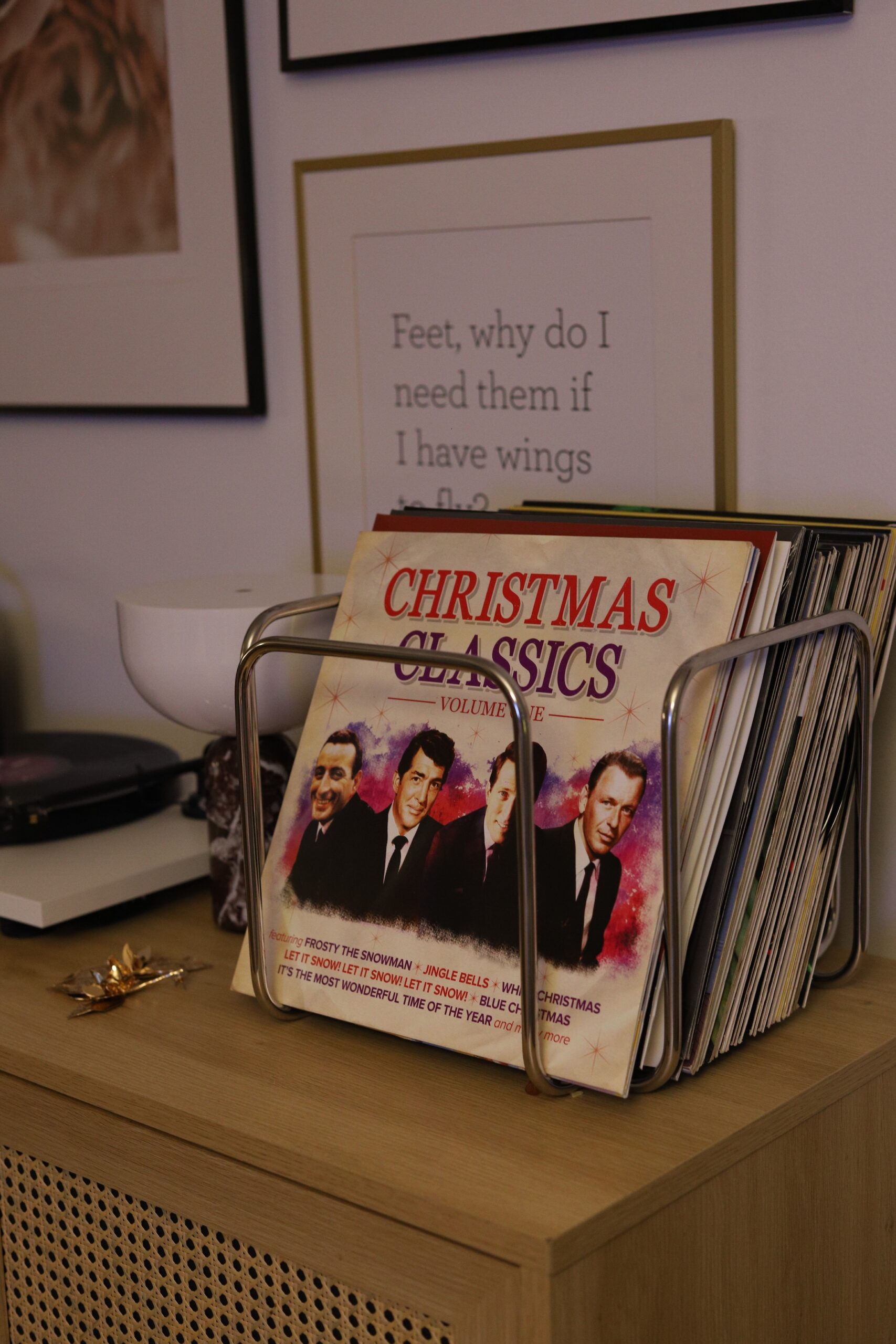 Gramofon je također bio na mojoj wishlisti neko vrijeme. Dobila sam ga prošli Božić za poklon i moram priznati da je to najljepši poklon kojeg možete pokloniti nekome tko voli glazbu. Gramofon u prosincu ima neku posebnu čar. To nije samo glazba, nego cijeli mali ritual koji uspori dan i stvori atmosferu. Taj pucketavi zvuk igle koja sjedne na ploču i lagani šum u pozadini odmah stvaraju osjećaj topline. Kao da se u prostoru upali neka nevidljiva lampica. Božićne ploče na gramofonu zvuče mekše i intimnije, pjesme se kroz dom šire sporije i nježnije nego na playlisti. Volim taj trenutak kad curke biraju koju ćemo ploču staviti, kada stavimo omot sa strane i pustimo da se glazba razmota kroz prostor dnevnog boravka. To je jedna od onih sitnica koje oblikuju blagdane i koje se pamte. Gramofon nas potiče da zastanemo, da se strpimo do one naše najdraže pjesme koja je pretposljednja na A strani. Daje taj neki nostalgičan moment, a pogotovo božićne pjesme. Gramofon nas uči istraživanju, proučavanju, strpljenju. Da nije sve samo instant. Sjećate se onog momenta kad smo slušali radio pa bi nas neka pjesma omiljene grupe razveselila kad bi je pustili? Ili kad smo gledali MTV i iščekivali baš taj neki spot kojeg smo silno htjeli iz nova i iz nova gledati? Imam osjećaj da gramofon ima tu moć da malo uspori trenutak i daje priliku nama i djeci da uče o glazbi, da istražuju i istančaju svoj ukus i stil. Prva božićna ploča koju smo uzeli je soundtrack filma Sam u kući. Uzeli smo i Sinatru, Ultimate Christmas i jedan ploču s božićnim klasicima. Božićne ploče daju prosincu taj poseban šarm i navijam za sve vas koji volite glazbu, da se odlučite na gramofon.
