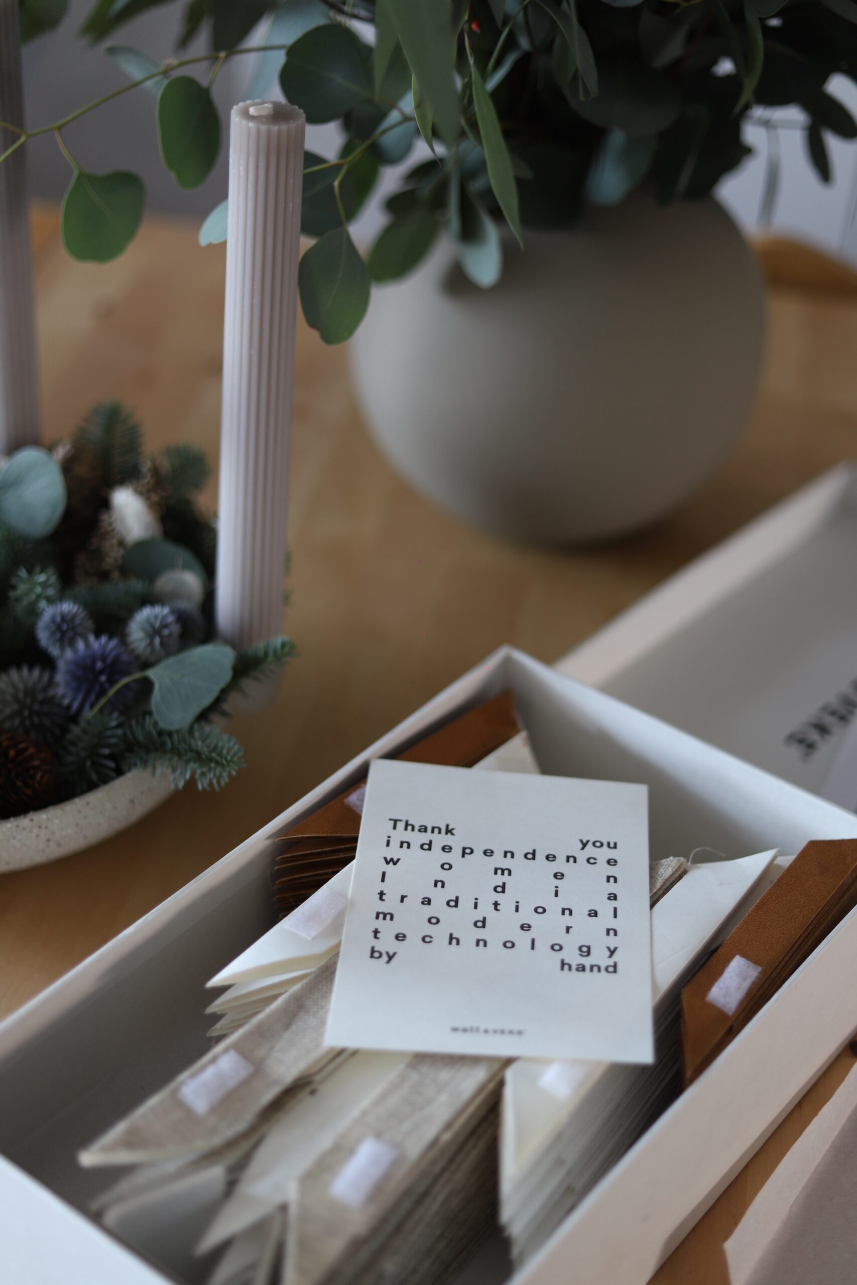 Vijenac od tatarike, ručno rađen u mom domu, pažljivo i s ljubavlju. Tatarika je biljka koja se ne trusi i koja će vas služiti i za sljedeći Božić. Kutija u kojoj vijenac dolazi nije samo ambalaža nego mali dio cijelog doživljaja. Ona nosi poruku More love, less hurry, pa već pri samom otvaranju pozivam vas da usporite ritam i te da blagdane doživite mirnije i nježnije. Čvrsta je i lijepa, pa se i nakon Božića može koristiti za spremanje omiljenih sitnica, kuglica ili uspomena.