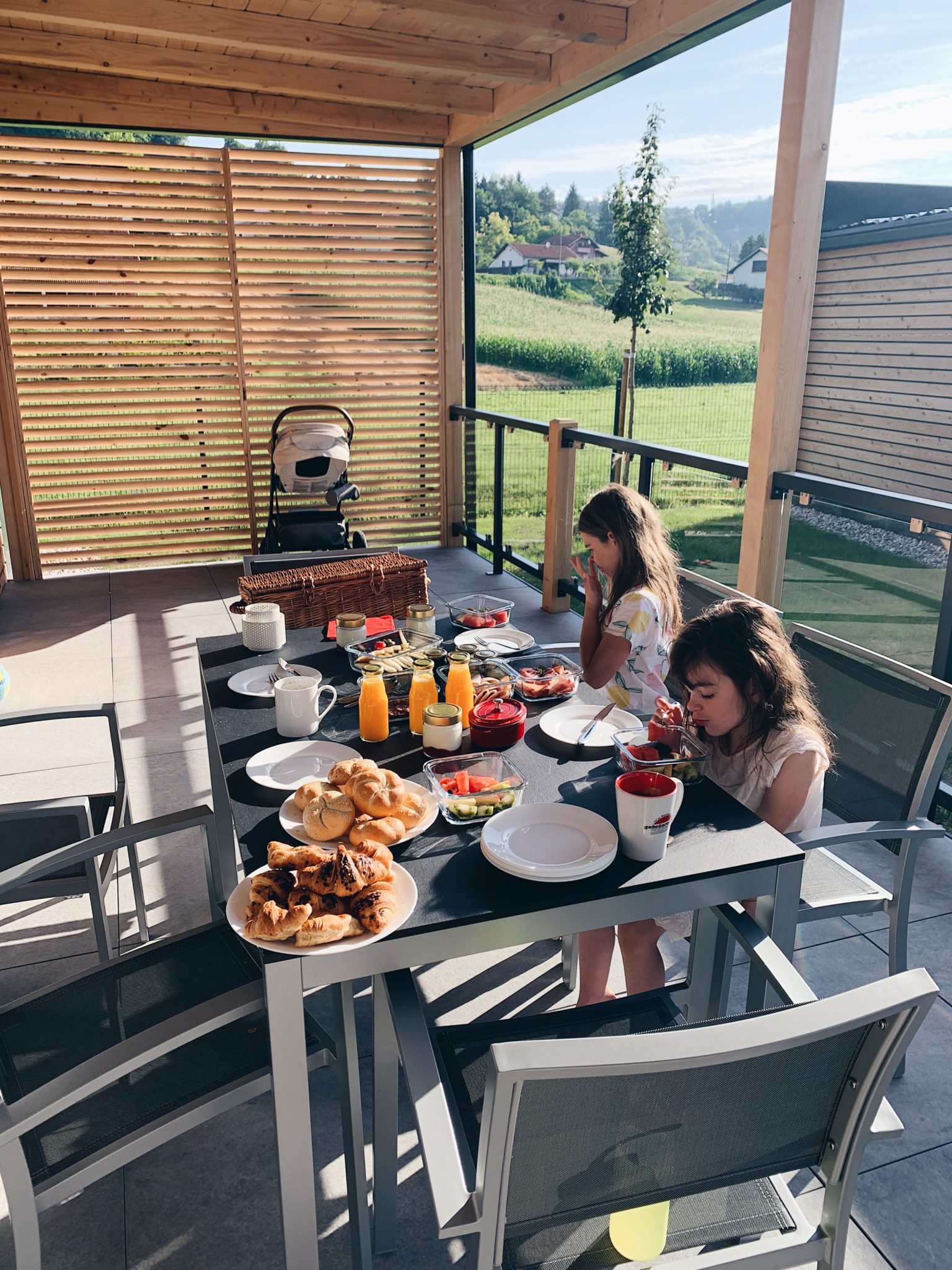 Drugi dan slijedio je taj famozan doručak. Zamislite si ovaj početak dana, ležerno jutro na terasi kućice, nalazite se na ležaljci, pokraj vas šalice vruće i ukusne kave, čuje se zvuk ptičica i tapkanje bosih nožica koje žure prema bazenu- bazenu koji je na desetak metara od vas. Djeca se brčkaju i uživaju, dok ih na stolu čeka pletena košara puna zdrave, domaće i jako ukusne hrane. Ta košara bila je nešto što nas je najviše oduševilo! Kad imate djecu, onda znate koliko je doručak važan i kako je to uvijek prioritet. I kad znate da ste bez brige i da su jutra stvorena za uživanje i da ćete ekšli popiti toplu kavu, e to je onda u punom smislu riječi pravi odmor. Bar za mene! A i moj Ivan će se složiti. Na večer smo ispunili malu anketu što bismo željeli za doručak u našoj košari i u kojem vremenu želimo da nam je ujutro dostave. Znači, mrak!