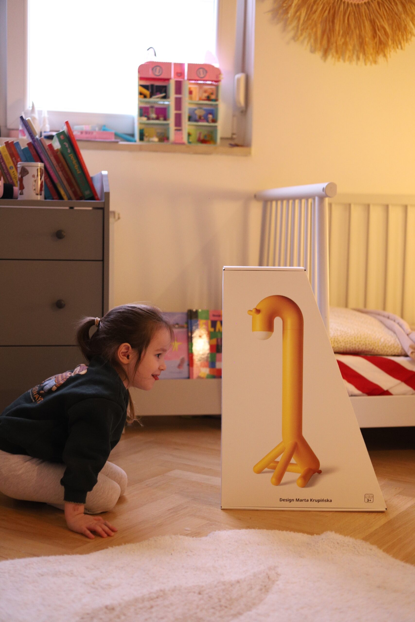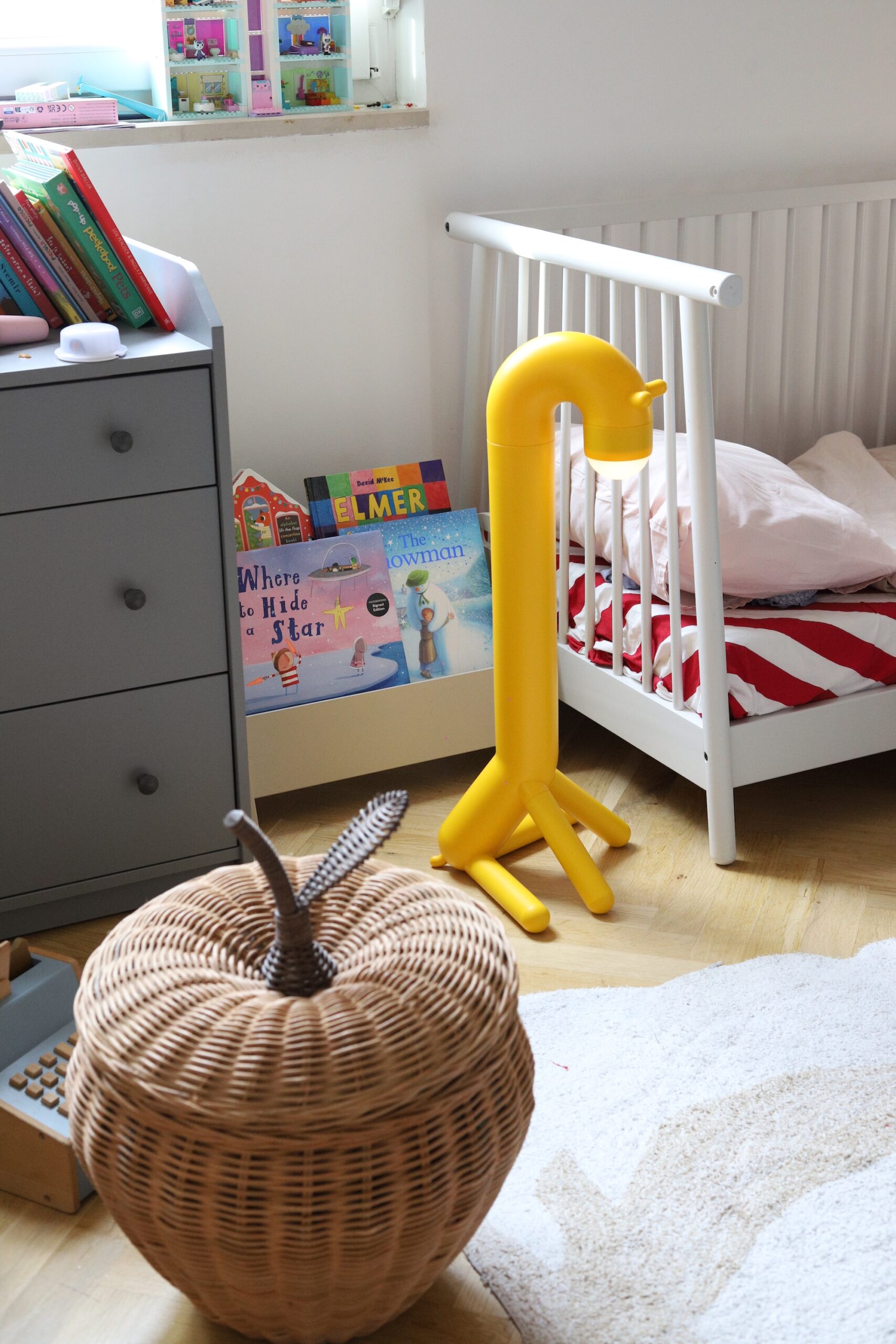 Lampa žirafa mi je favorit, izgleda poput dizajnerske lampe koja će se genijalno uklopiti u eklektične i moderne domove, a i one minimalističke, jer će svojim neočekivanim dizajnom privlačiti pozornost, poticati na razigranost i igru, a isto tako stvoriti će umirujuću atmosferu prije spavanja ili intiman kutak koji je djeci u tom trenutku vrlo važan jer je dio njihovog maštovitog svijeta.