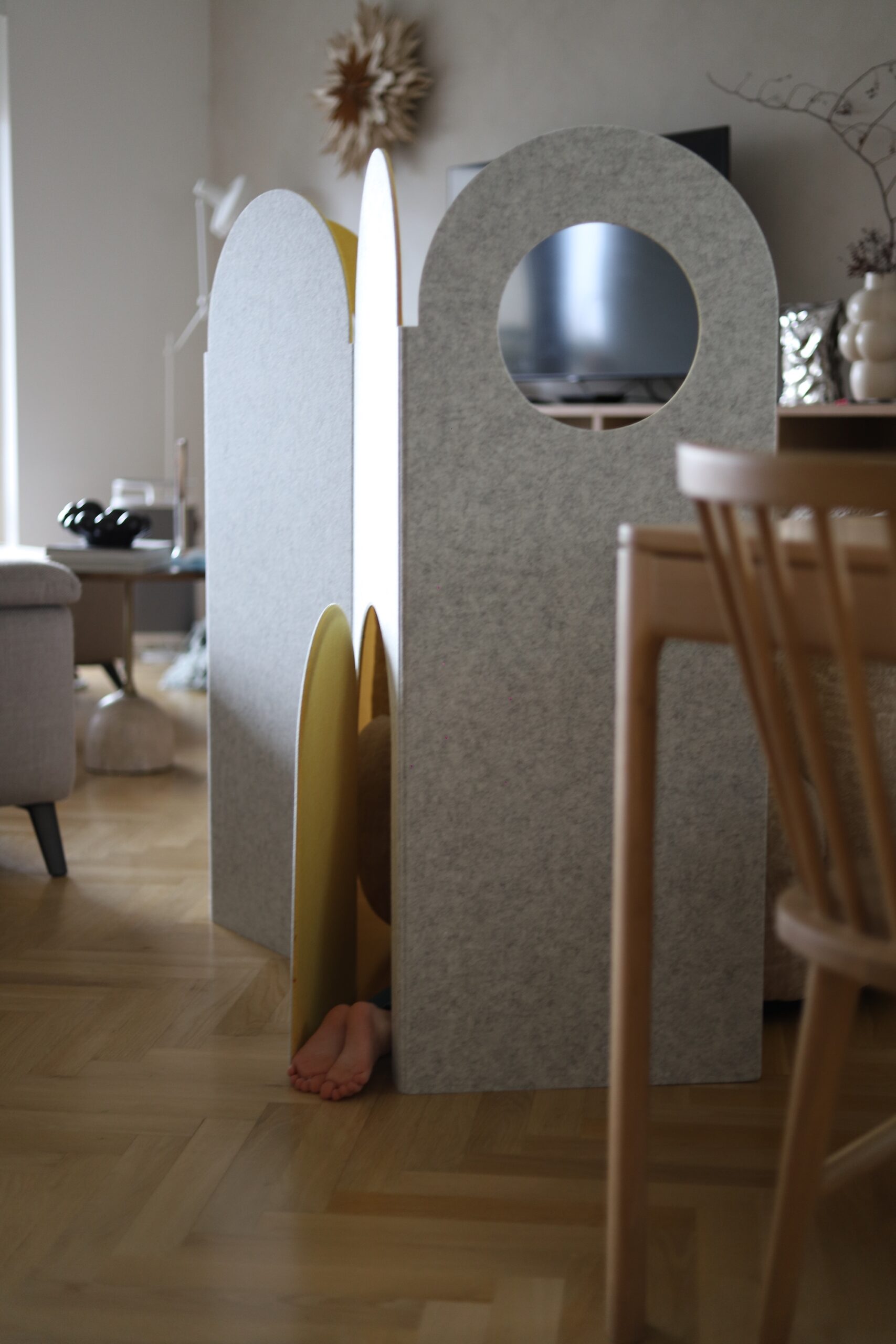 Sobna pregrada mojim je curkama još veći hit, jer što ima zanimljivije od stvaranja kućice i svog osobnog prostora u svijetu dječje mašte? A imate i prozorčić i vratašca!