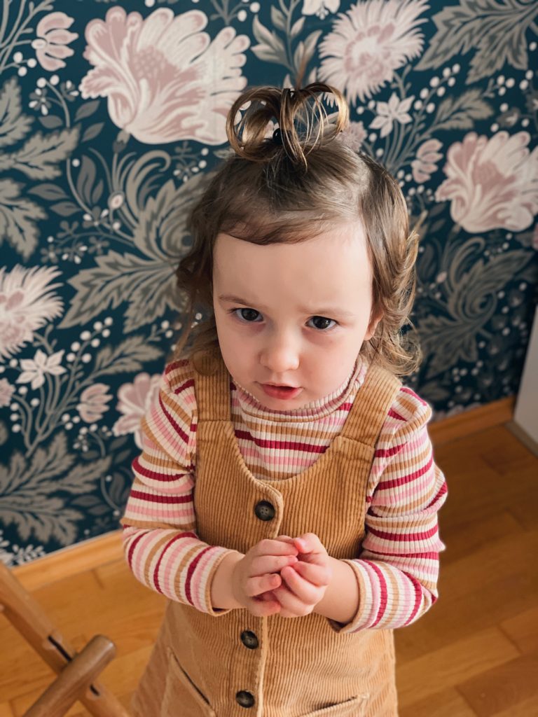 Te nedjelje prije podne još uvijek smo hoduckali u pidžami i tražili zanimaciju po stanu, dok dječju sobicu nije obasjalo prekrasno zlatno listopadno sunce. Milin nestašni repić tražio je zabavu, skupljala je legiće po stanu koje su seke svakog dana, nemilosrdno i bez obzira na prigovaranje roditelja, ostavljale po podu. Stavljala ih je u svoj džepić od samt haljinice koju je naslijedila od svoje jedne male slatke insta prijateljice. Kakva bi nam to bila nedjelja, a da nismo napravile bar nekoliko spontanih fotkica, pomislila sam jer mi je pala na pamet jedna jako simpatična ideja! Kad već gajim toliku ljubav prema svim našim preslatkim minijaturnim namještajem, hajmo snimiti jedan simpatičan Reels gdje će moja Mila imati glavnu ulogu i to u Priči o stolicama. Koliko ih imamo, jeste li ih izbrojili? Krenimo od početka 🙂