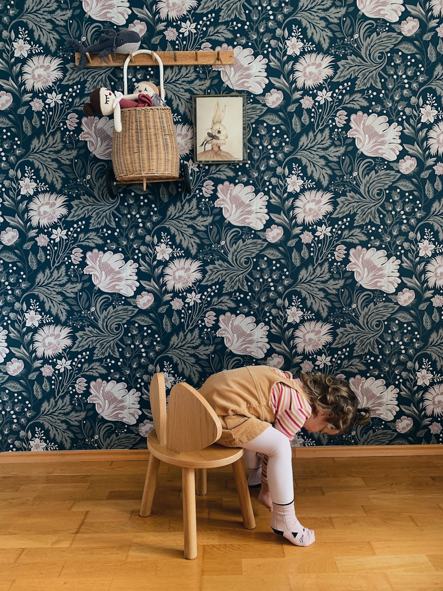Ova stolica je najmlađi član, a stigla nam je kad i krevet na kat. Već pogađate, radi se o poznatom dizajnerskom imenu Oliver Furniture. Imenu kojem se divim već jako dugo, čiji namještaj daje poseban skandi ugođaj svakom domu. Obožavam sve što Oliver Furniture nudi i predivno mi je da je od nedavno stigao u Mali zakladi. Znam da sam vam obećala blog post o krevetu na kat, doći će i on na red. Pogledajte samo ovu inspiraciju fotografija kad na Pinterestu upišete Oliver Furniture! Trenutno u našem dnevnom boravku imamo i Oliver furniture stolić. Jako nam se lijepo uklopio uz svijetlo drvo Beste na zidu tako da sam ga odlučila ostaviti i to zajedno s ovom malom stolicom. Upravo uz tu kombinaciju moje curke vrlo često grickaju neke svoje grickalice i bojaju svoje bojanke.
