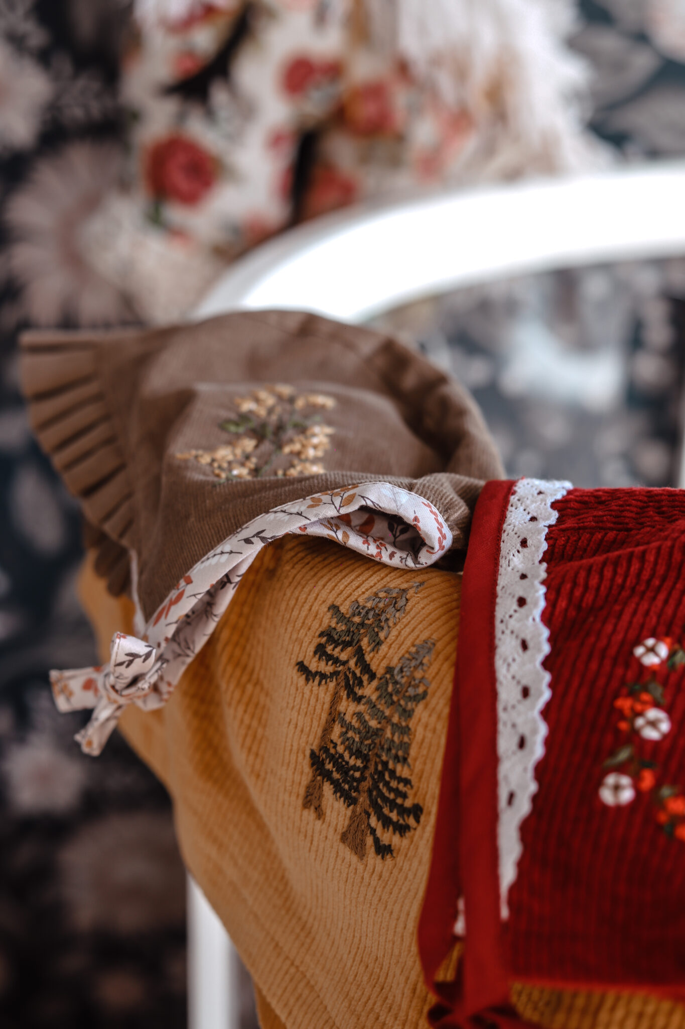 Odrasla sam na selu, a školovala sam se i živjela podosta godina u Zagrebu i uvijek sam govorila da bi željela da moja djeca također odrastaju na selu. I evo to se ostvarilo! Obožavam ovaj krajolik koji me okružuje i najdraže mi je doba upravo ovo, proljeće; kada sve cvijeta, miriše, i prepuno je boja te su mi ugl takvi motivi koje vezem. Cvijeće, lišće, priroda. U početku je bio plan da boje budu isključivo zemljani tonovi, no previše volim boje tako je moja paleta boja proizvoda podosta velika.