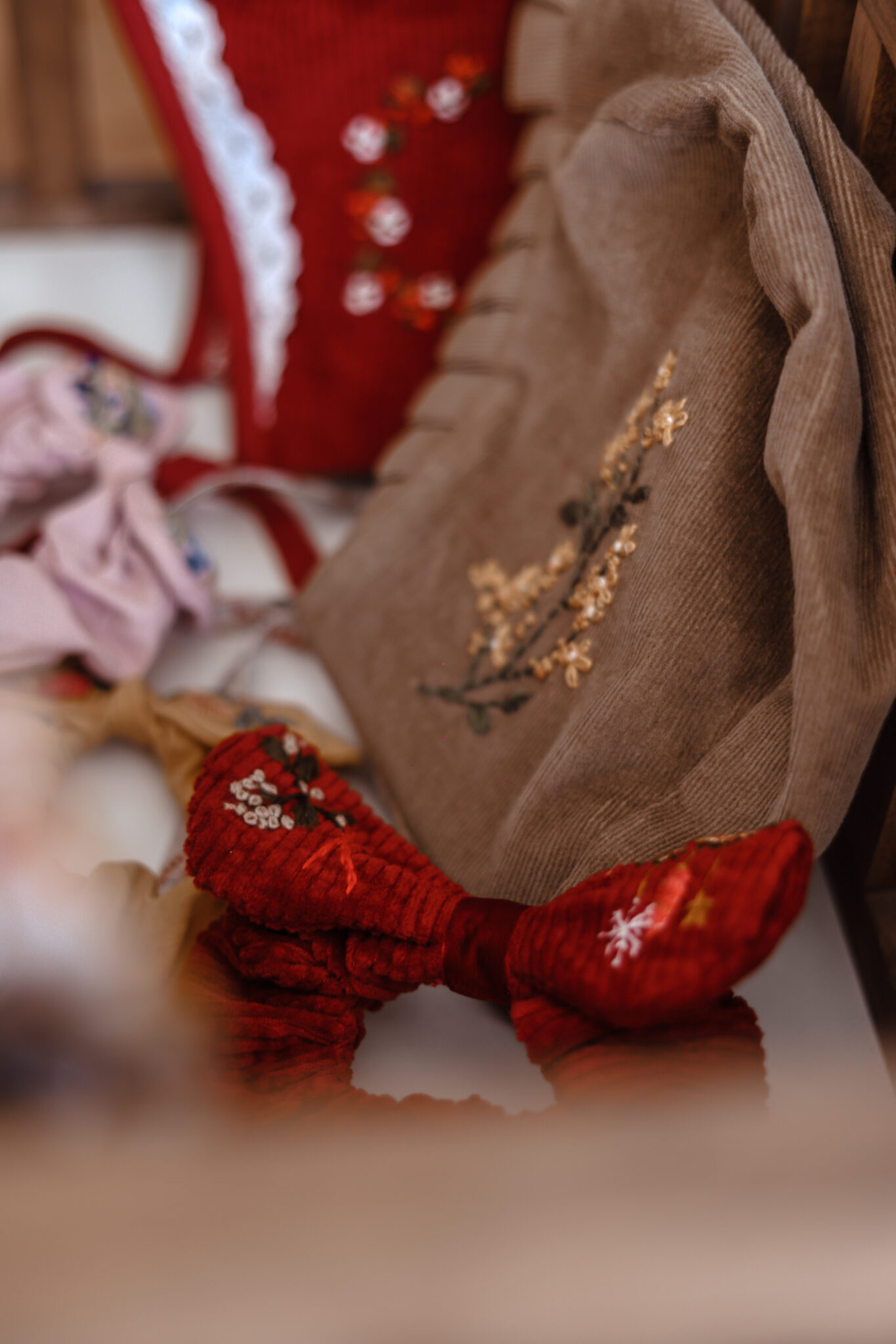 Proizvode koje trenutno nudim su haljine, košulje za djevojčice i dječake, suknjice, kape, marame i trake za kosu, kragne, leptir mašne, te dekorativne vezove u okviru. Svi su predmeti unikatni, jedinstveni i personalizirani. Jako malo toga radim unaprijed, uvijek mi je draže svaki predmet posvetiti osobi koja ga je naručila.