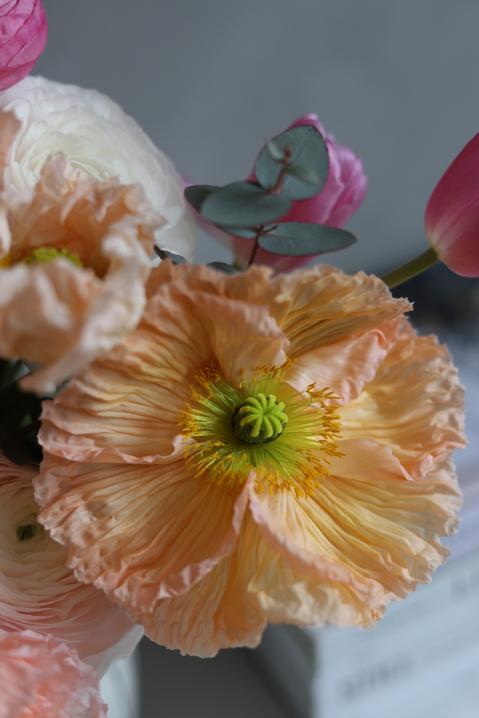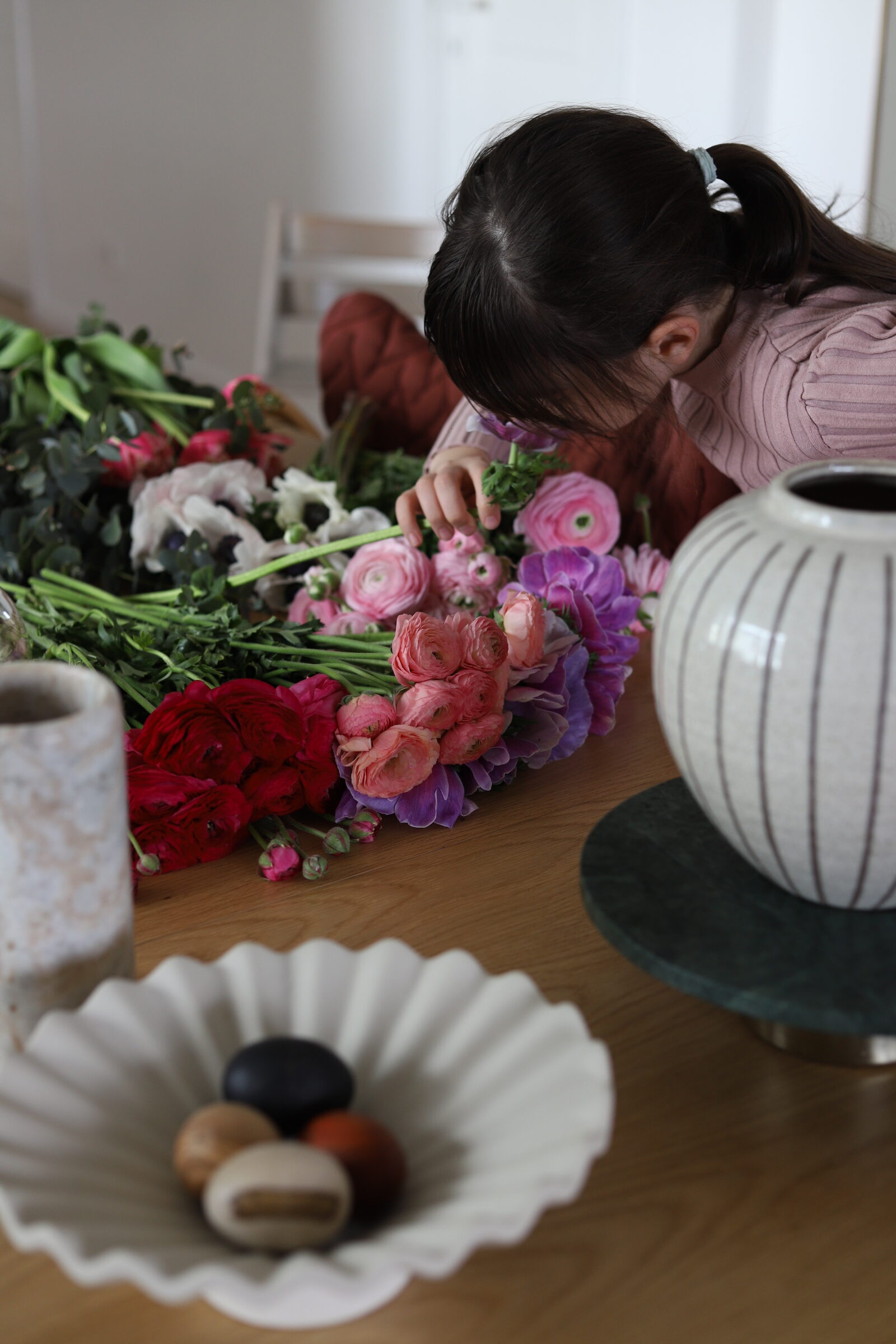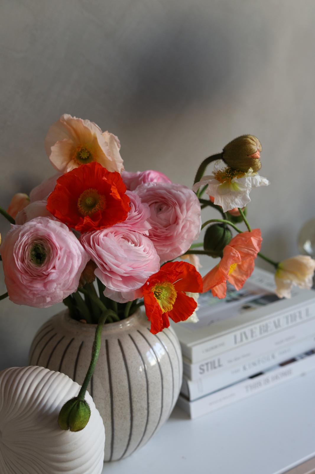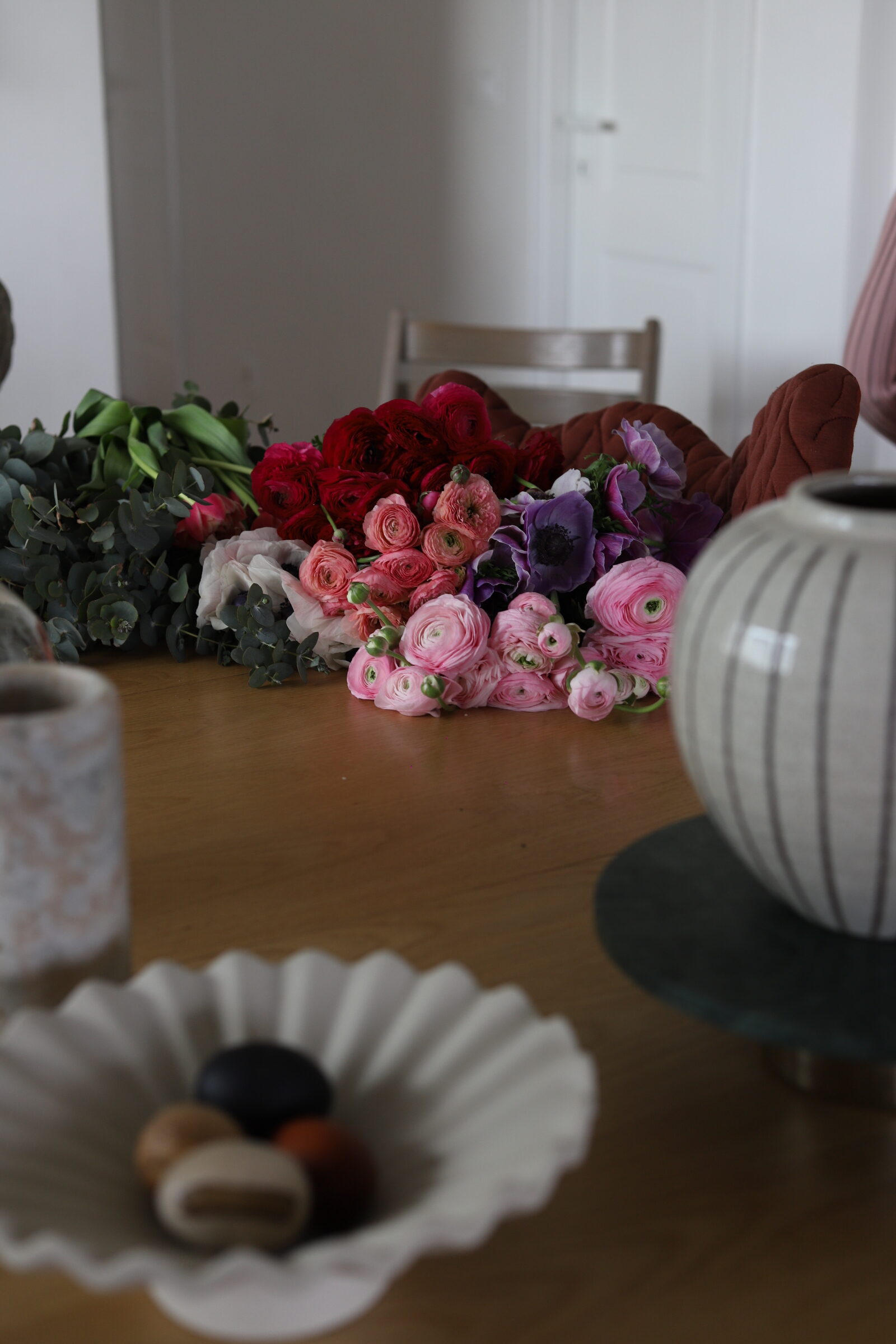 Voljela bih da mogu svakog jutra otići na zelenu i makar barem škicnuti ponudu. Ili imati možda svoj vrt jednog dana? Nikad ne znaš kroz koje faze ćemo prolaziti, gdje će nas hobiji odvesti. Nekad kad ne stignem ili mi se ne da ustajati, skoknem do Lidla koji mi je u kvartu pa barem uzmem svježe tulipane, imaju često lijepu ponudu. Zadnja dva tri buketa nastala su u kombinaciji predivnih anemona, ranunkula i makova. Dodala bih još pokoji tulipan i koju granu eukaliptusa što je sve skupa bio predivan spoj boja. Znate koliko me to slaganje cvijeća opušta, a i samo fotografiranje.