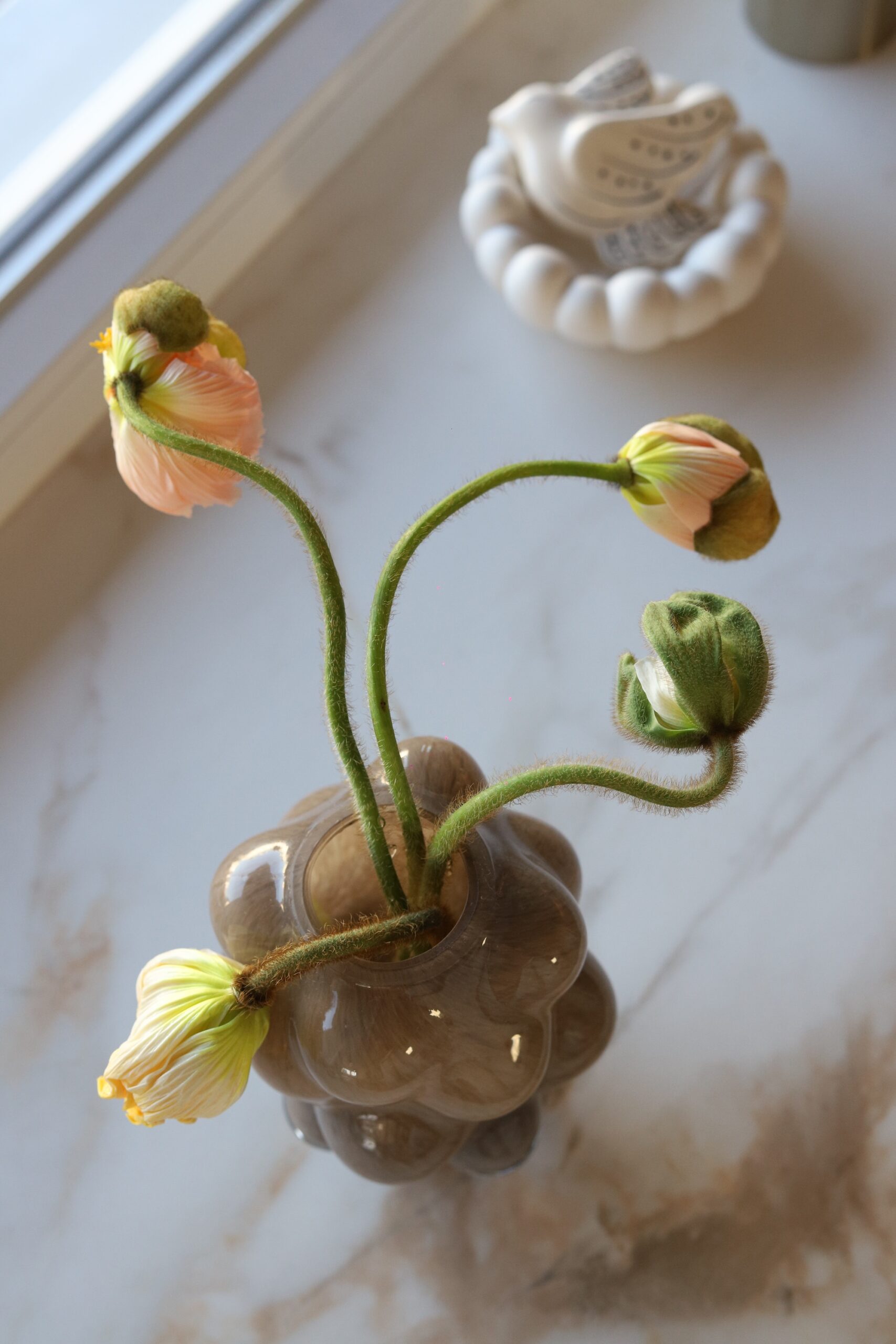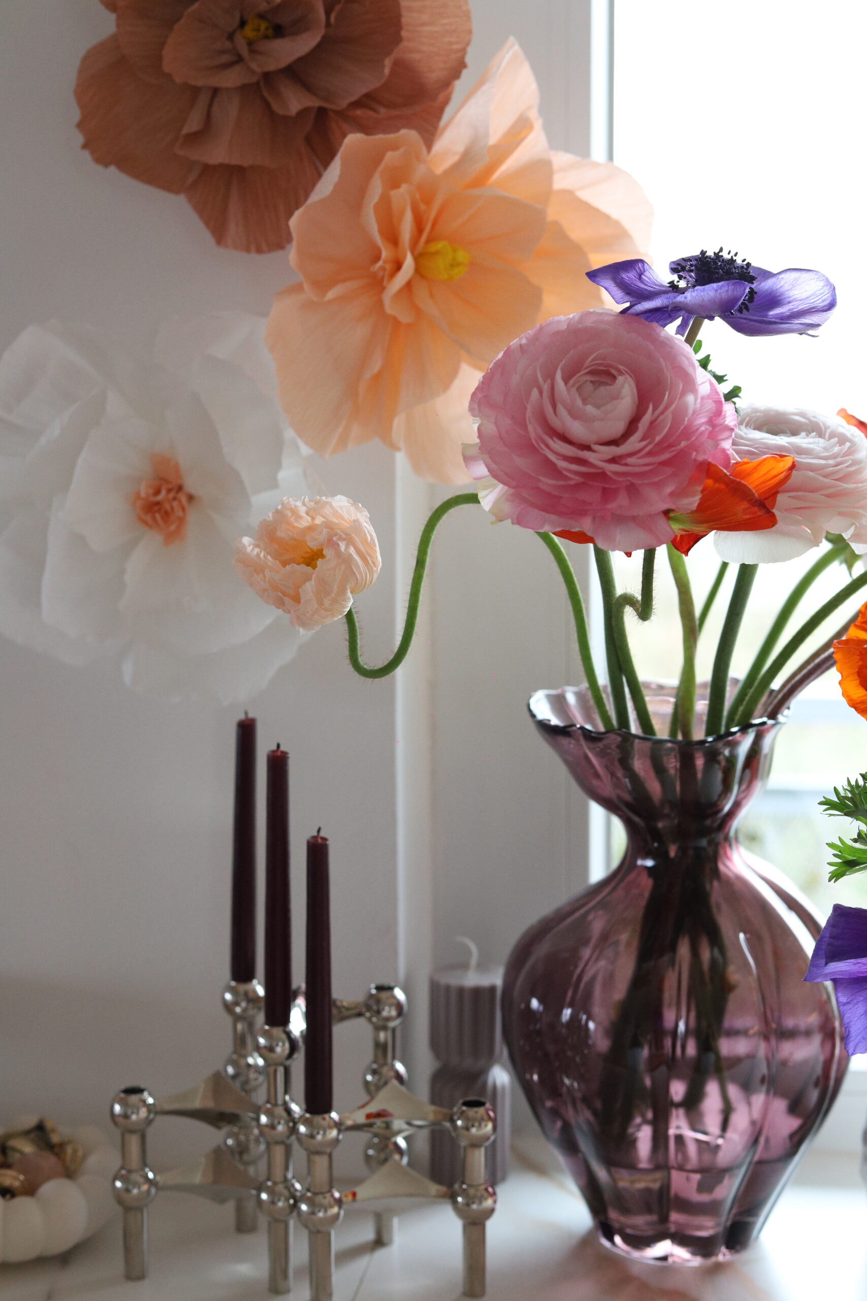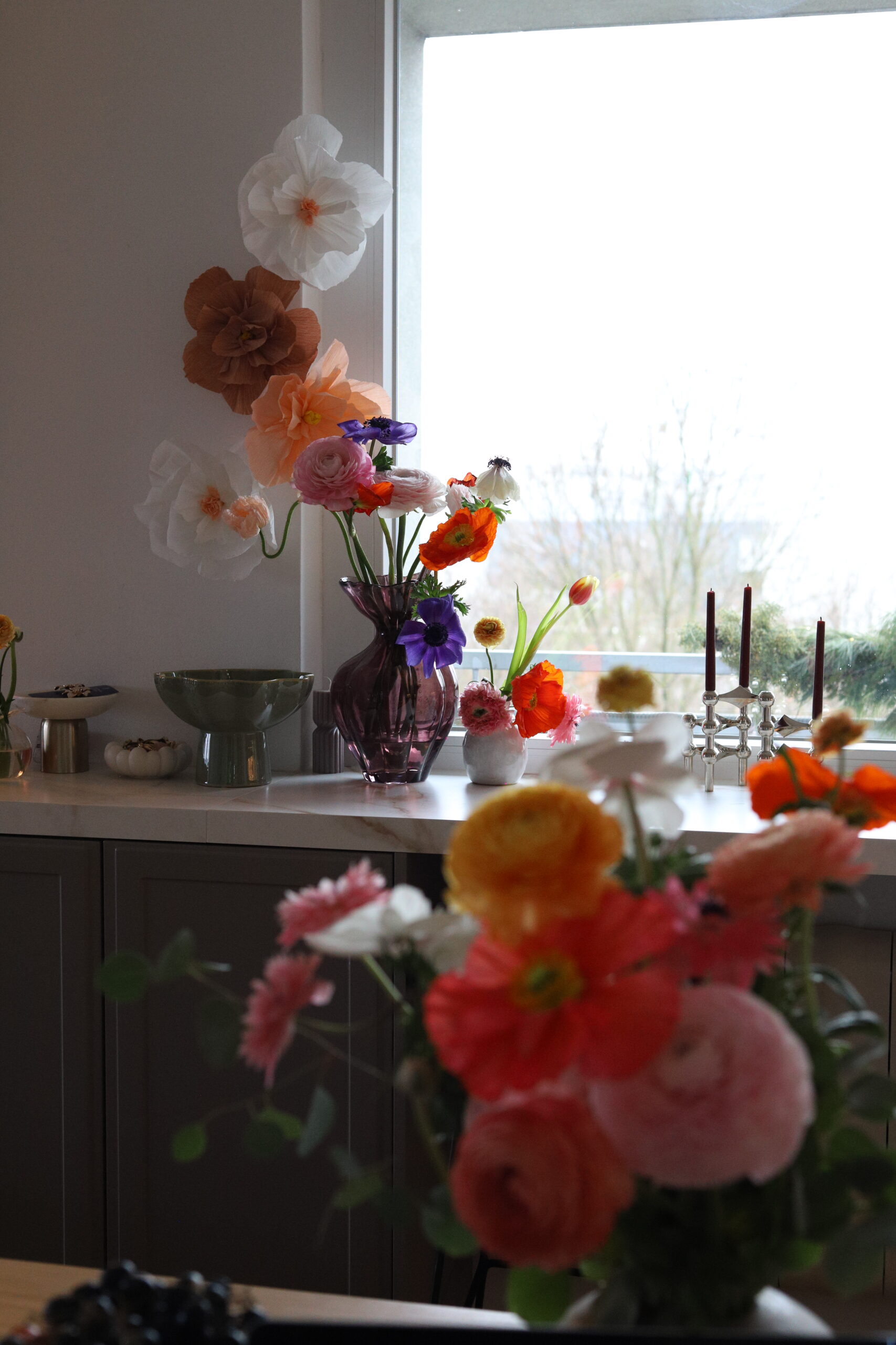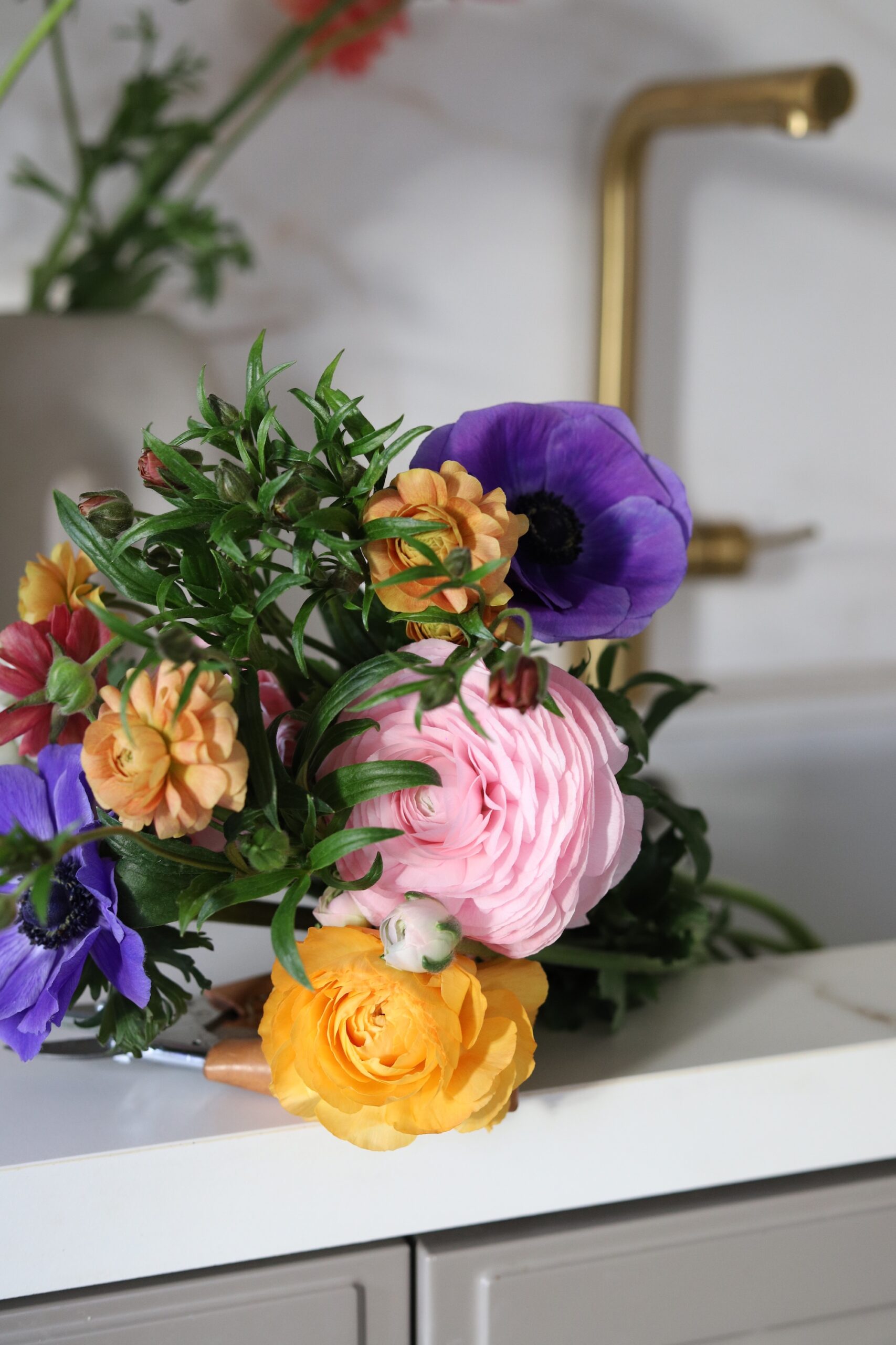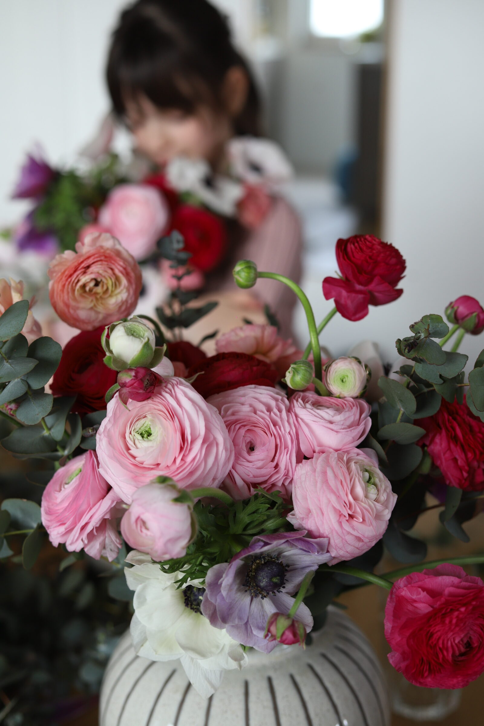 Voljela bih da mogu svakog jutra otići na zelenu i makar barem škicnuti ponudu. Ili imati možda svoj vrt jednog dana? Nikad ne znaš kroz koje faze ćemo prolaziti, gdje će nas hobiji odvesti. Nekad kad ne stignem ili mi se ne da ustajati, skoknem do Lidla koji mi je u kvartu pa barem uzmem svježe tulipane, imaju često lijepu ponudu. Zadnja dva tri buketa nastala su u kombinaciji predivnih anemona, ranunkula i makova. Dodala bih još pokoji tulipan i koju granu eukaliptusa što je sve skupa bio predivan spoj boja. Znate koliko me to slaganje cvijeća opušta, a i samo fotografiranje.