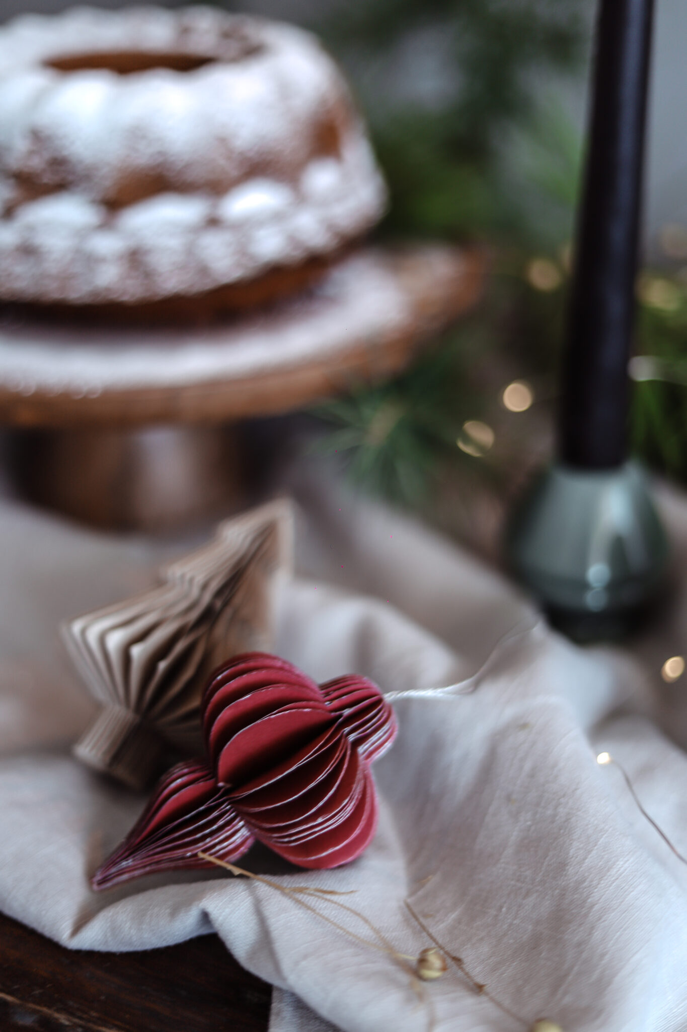 Ove godine mi se sviđa trend da se za adventski iskoristi neki komad posuđa koji imamo doma. Ja sam npr adventski složila na drvenom etažeru koji imam. Volim zagasite boje, baršunaste jastičnica zagasito zelene i oker u kombinaciji sa zlatnom, malo bora i mahovine su mi odlična kombinacija.