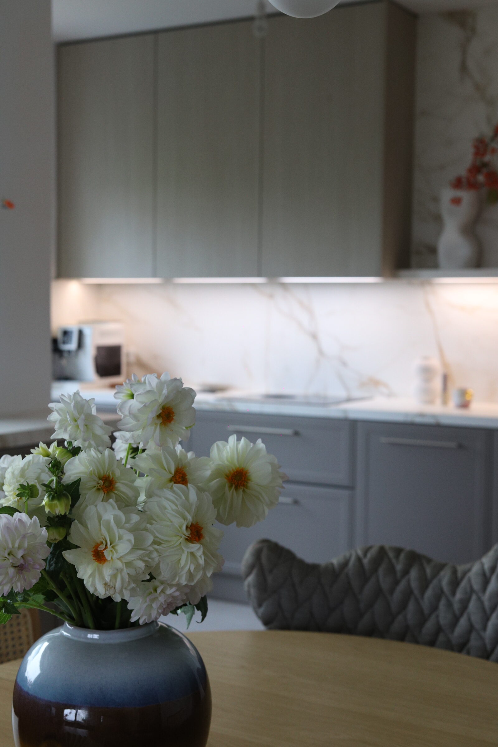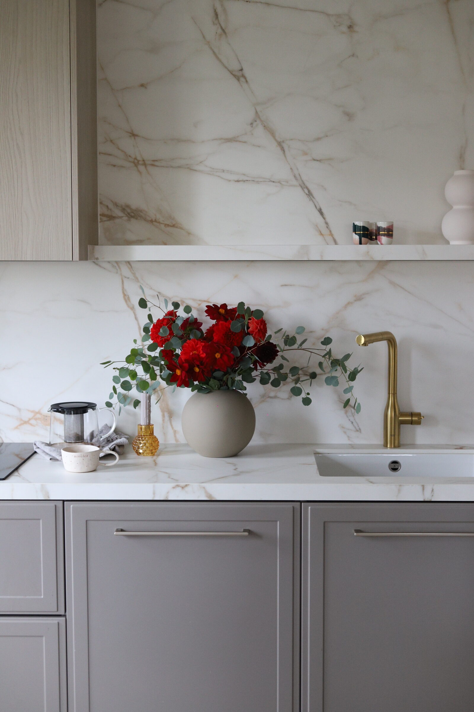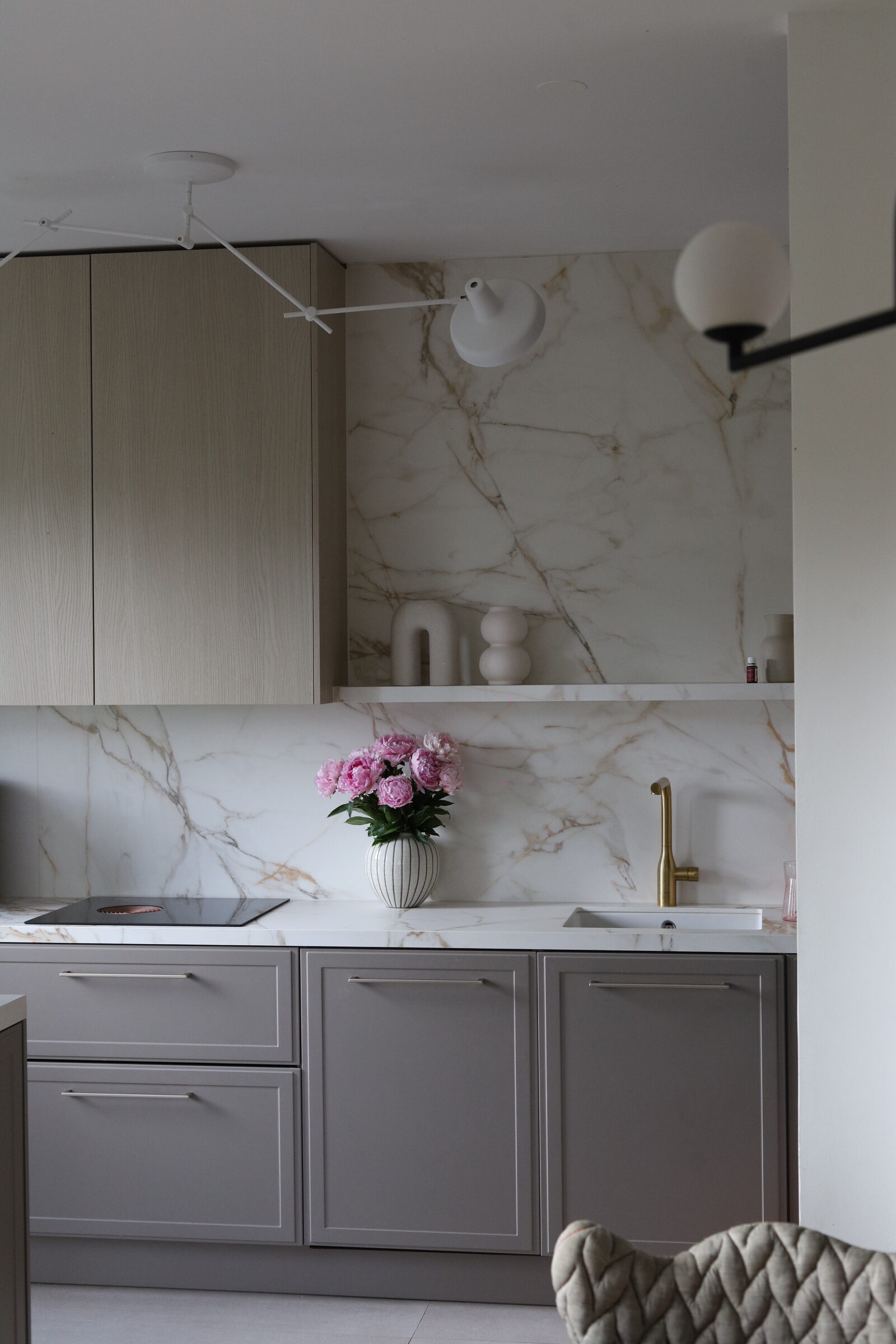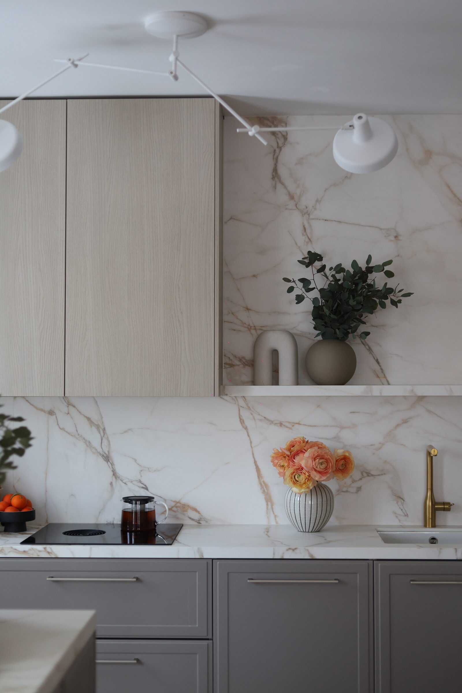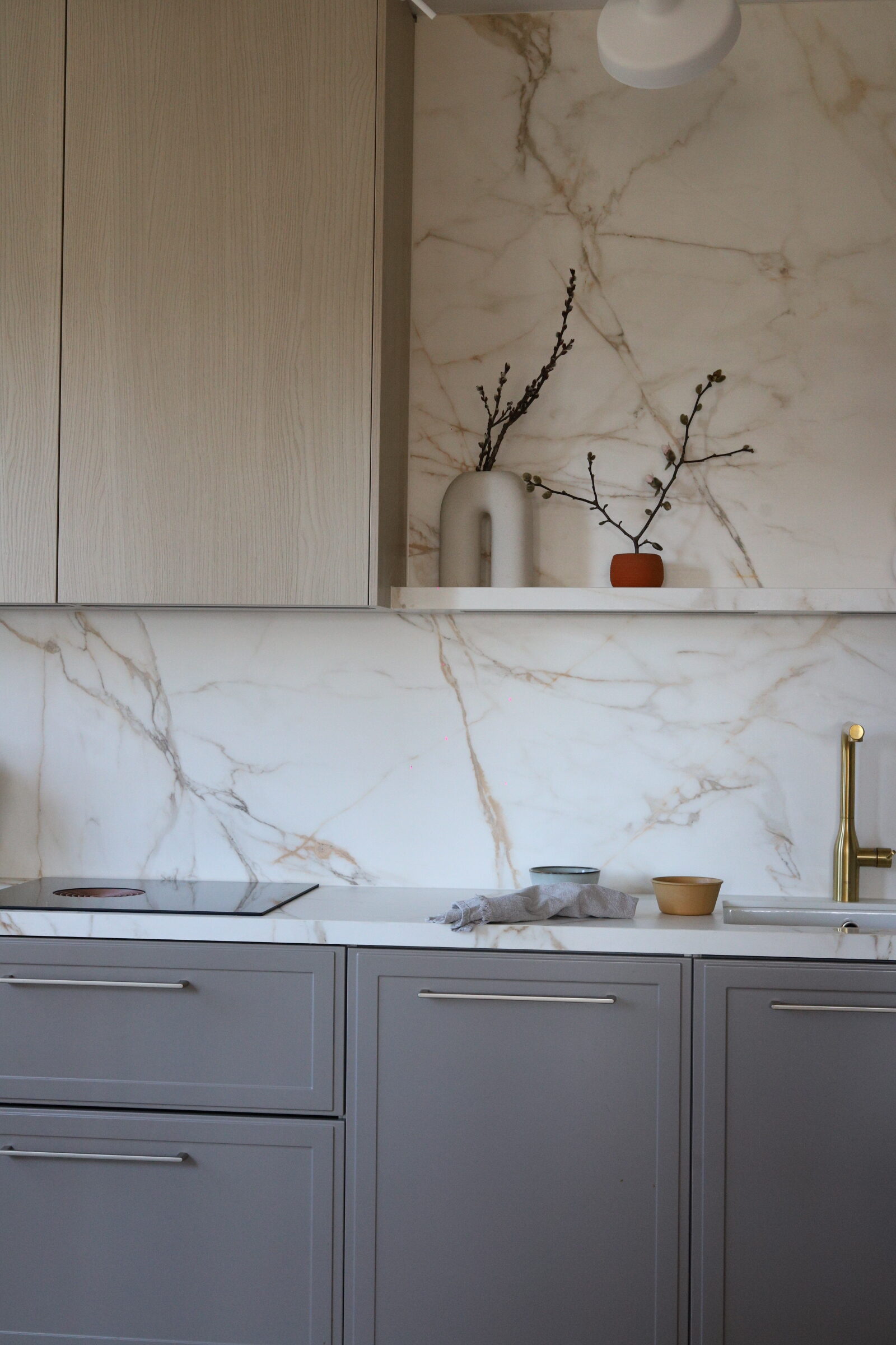 Svi koji me pratite već neko vrijeme znate da mi je prva inspiracija za kuhinju bila Athena Calderone ( kao valjda i svakoj osobi koja ima svoje Pinterest albume), zbog koje sam se zaljubila u marble uzorak i od prvog dana renovacije znala sam da će to biti nit vodilja za moj moodboard nove kuhinje. Čak sam jedno vrijeme i razmišljala o toj njenoj famoznoj plavoj kuhinji u New Yorškom stanu kao boju koju sam mogla zamisliti u svom domu. Ali samo na kratko vrijeme. Nije me to dugo držalo. Nakon plave prešla sam na japandi stil, i tamniju nijansu drva, da bi se na kraju odlučila za spoj skandinavskog i klasike.