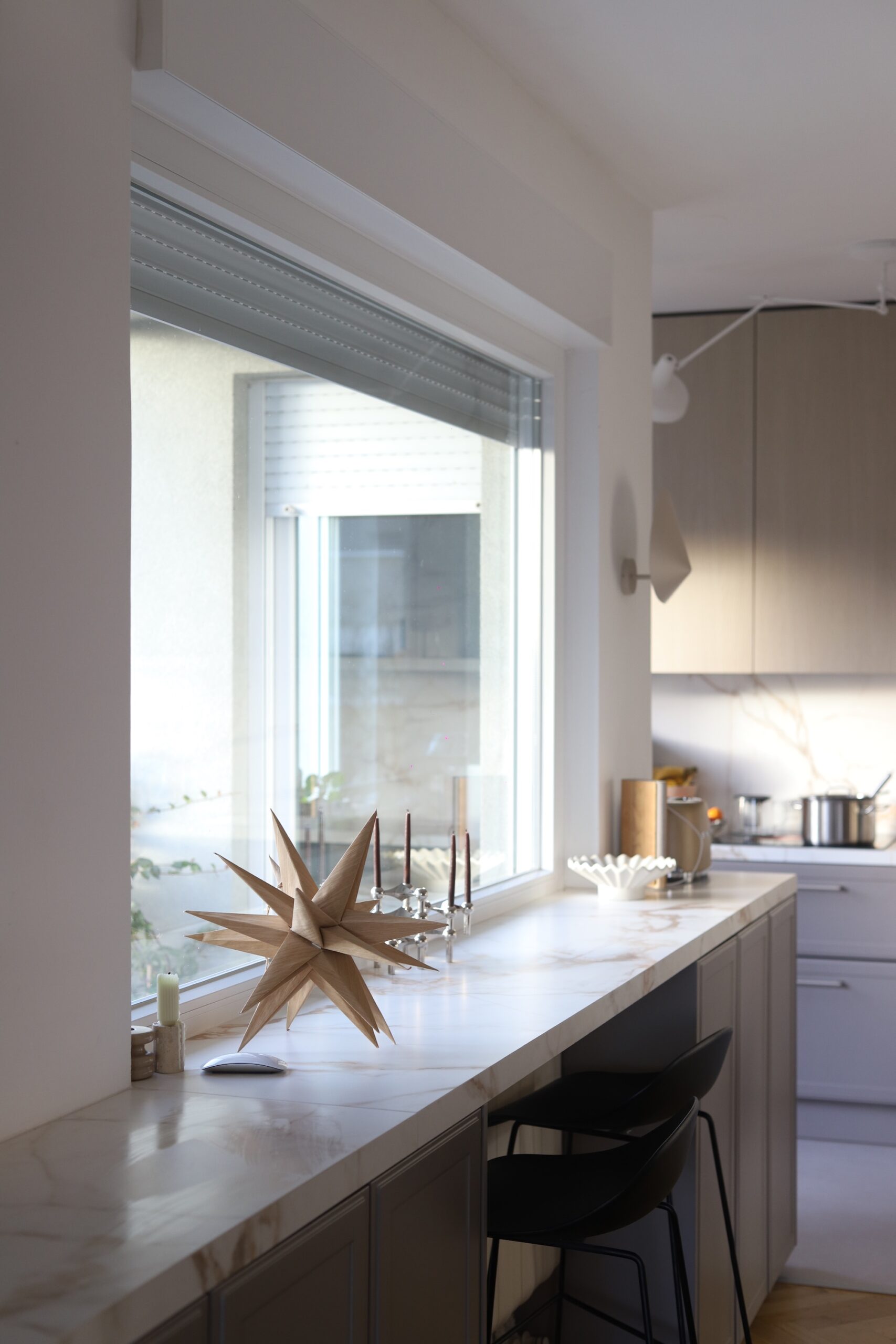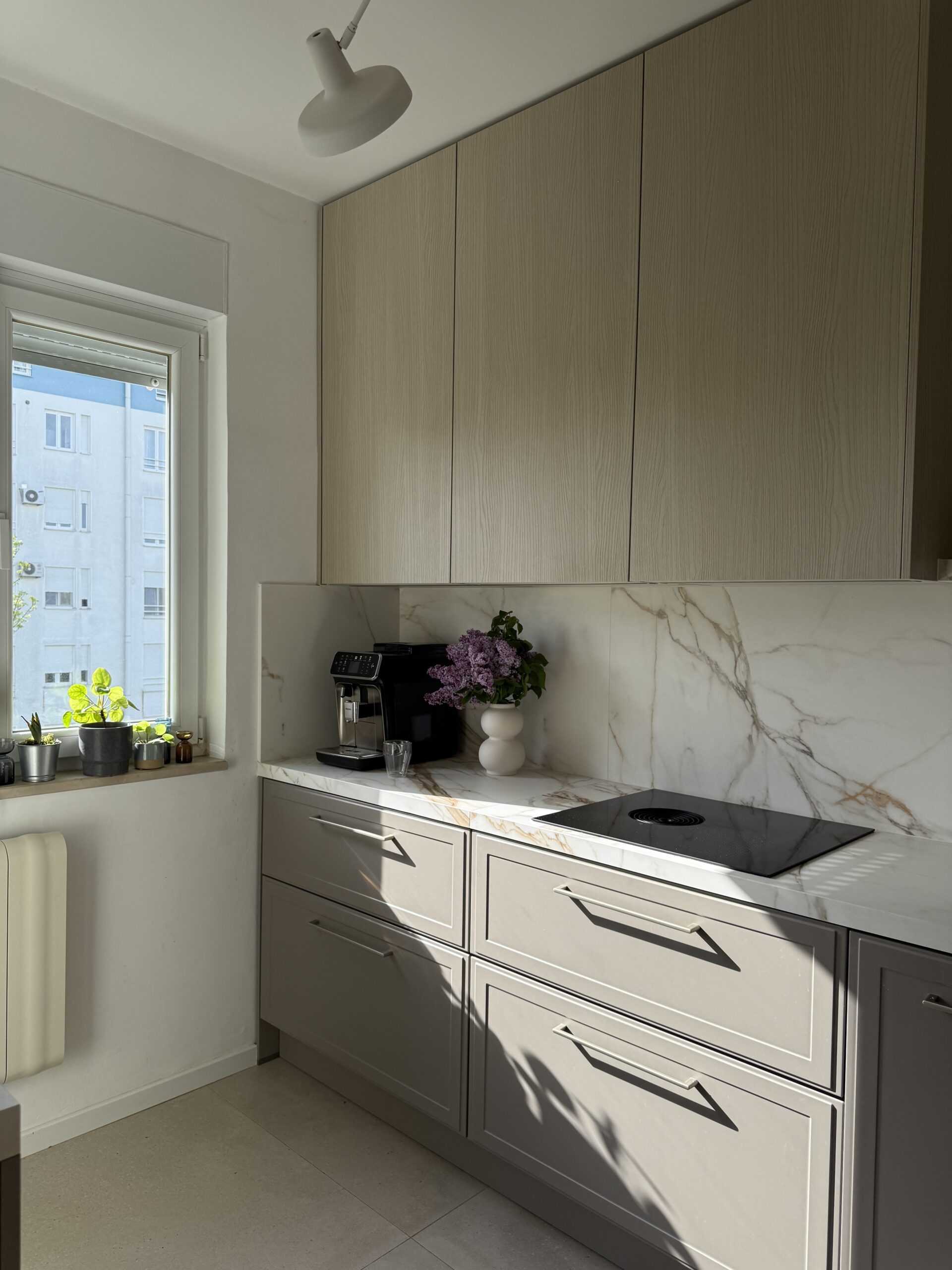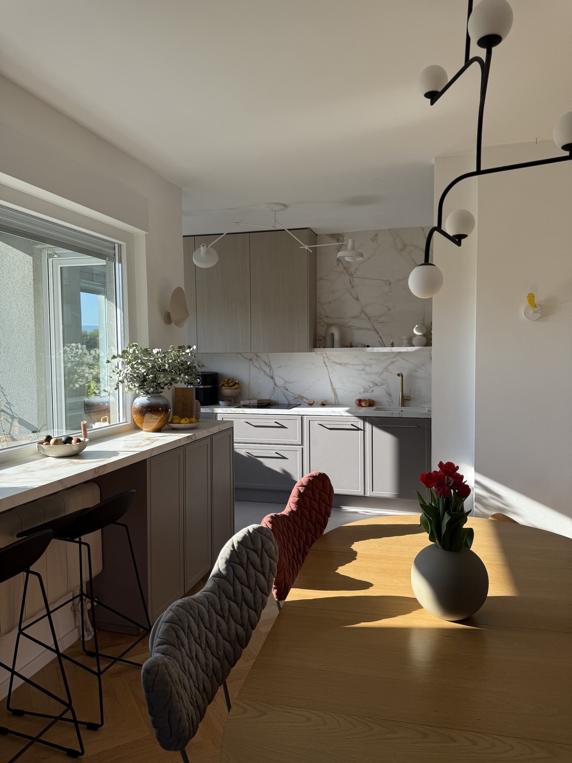 Ono čime sam se također vodila kroz ovaj projekt bilo je da ne donosim odluke samo po estetici, da razmišljam kako ću prostor koristiti svaki dan. Da kuhinja bude “moja”, a ne samo lijepa na slici. As u rukavu kojeg sam imala bila je definitivno odluka da napravimo šank ispod prozora. Tu smo dobili dodatnog prostora za skladištenje jer je ideja bila da do radijatora dođu barske stolice, a lijevo i desno od nijh ormari s policama te vitrina koja bi zaokružila cijelu priču.