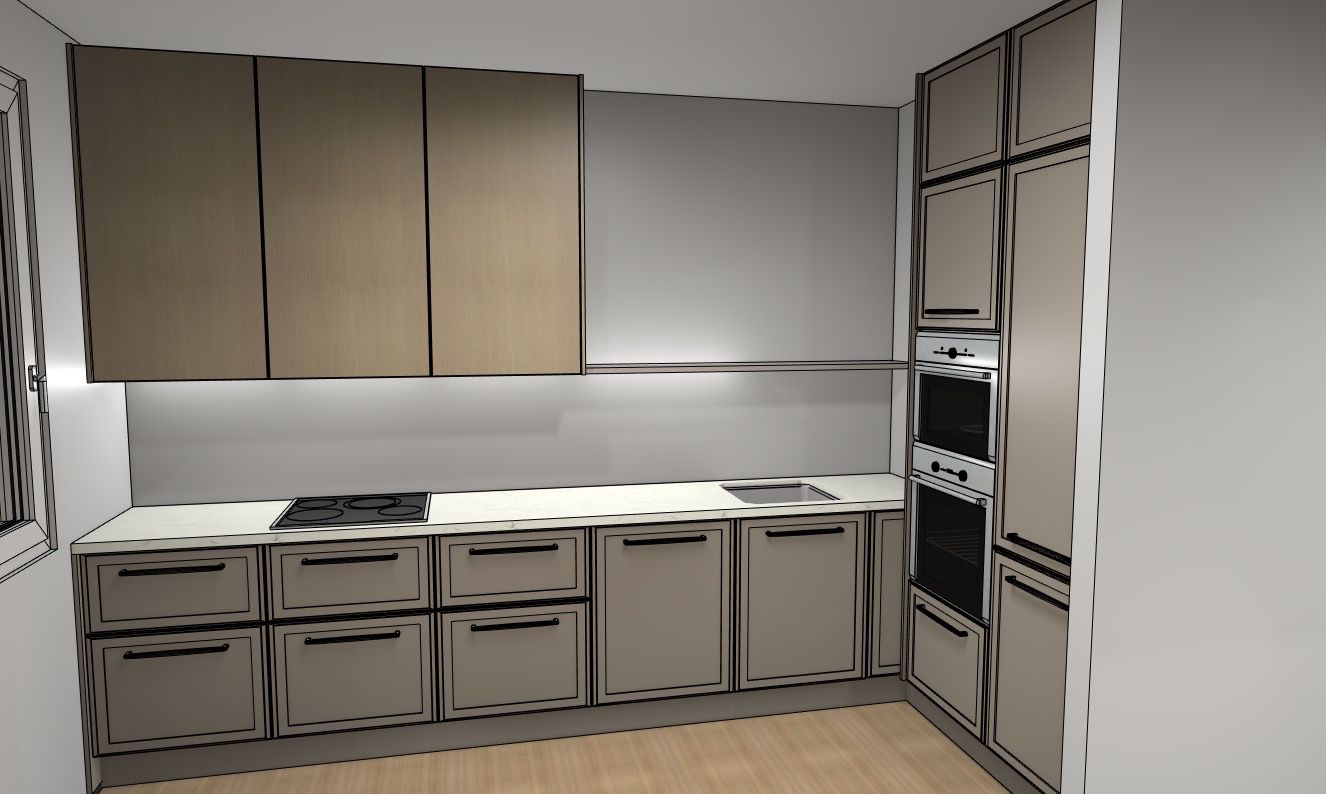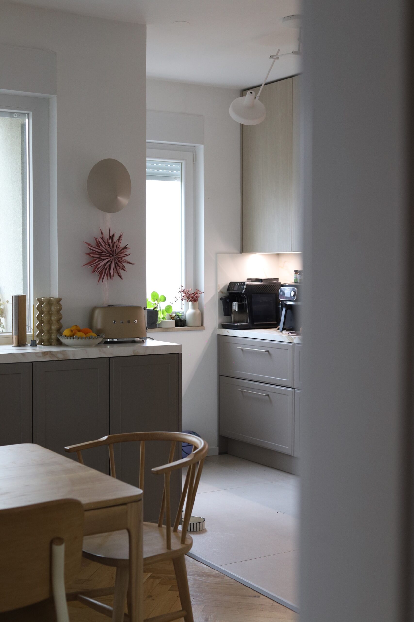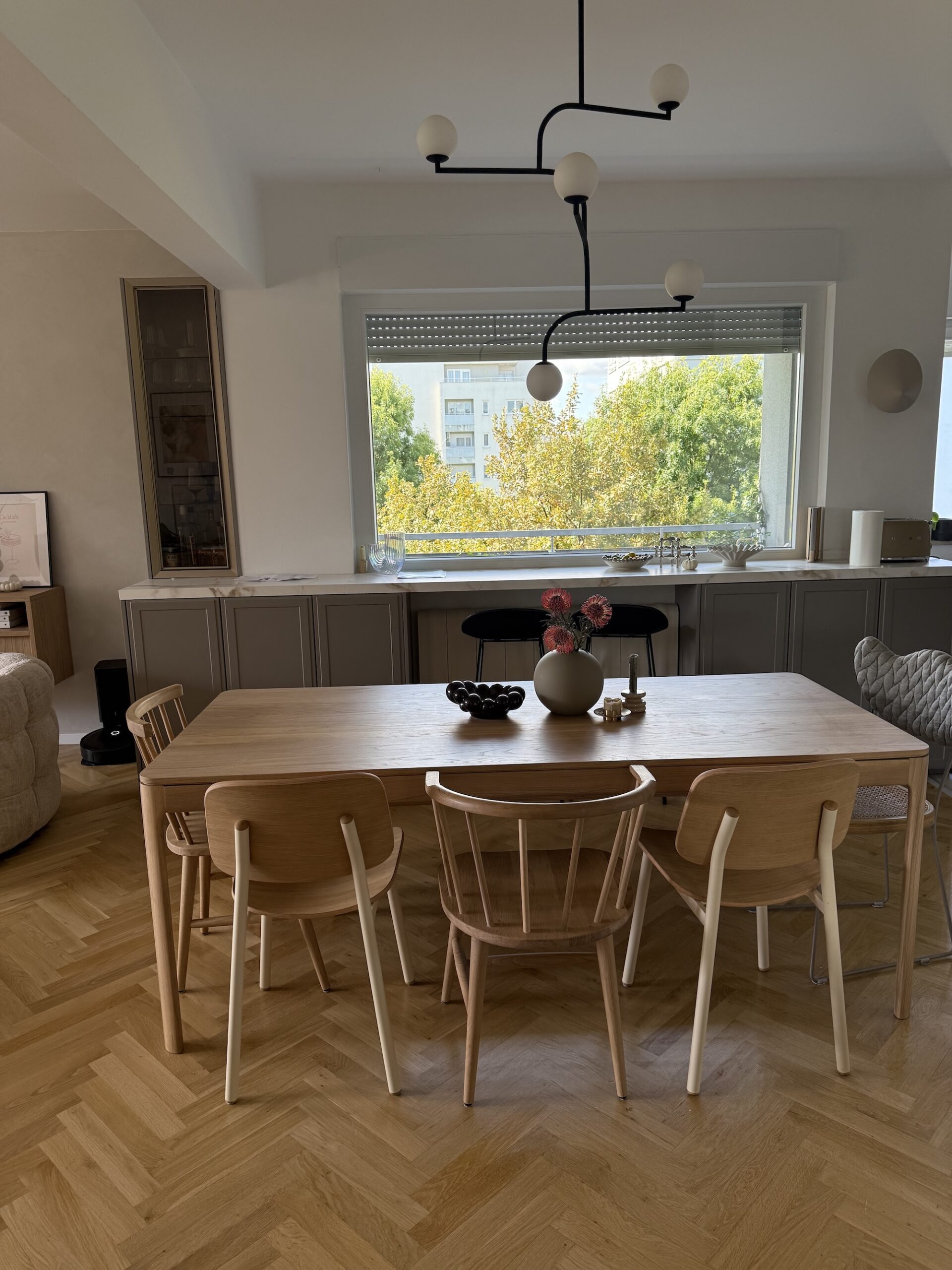 Ono čime sam se također vodila kroz ovaj projekt bilo je da ne donosim odluke samo po estetici, da razmišljam kako ću prostor koristiti svaki dan. Da kuhinja bude “moja”, a ne samo lijepa na slici. As u rukavu kojeg sam imala bila je definitivno odluka da napravimo šank ispod prozora. Tu smo dobili dodatnog prostora za skladištenje jer je ideja bila da do radijatora dođu barske stolice, a lijevo i desno od nijh ormari s policama te vitrina koja bi zaokružila cijelu priču.
