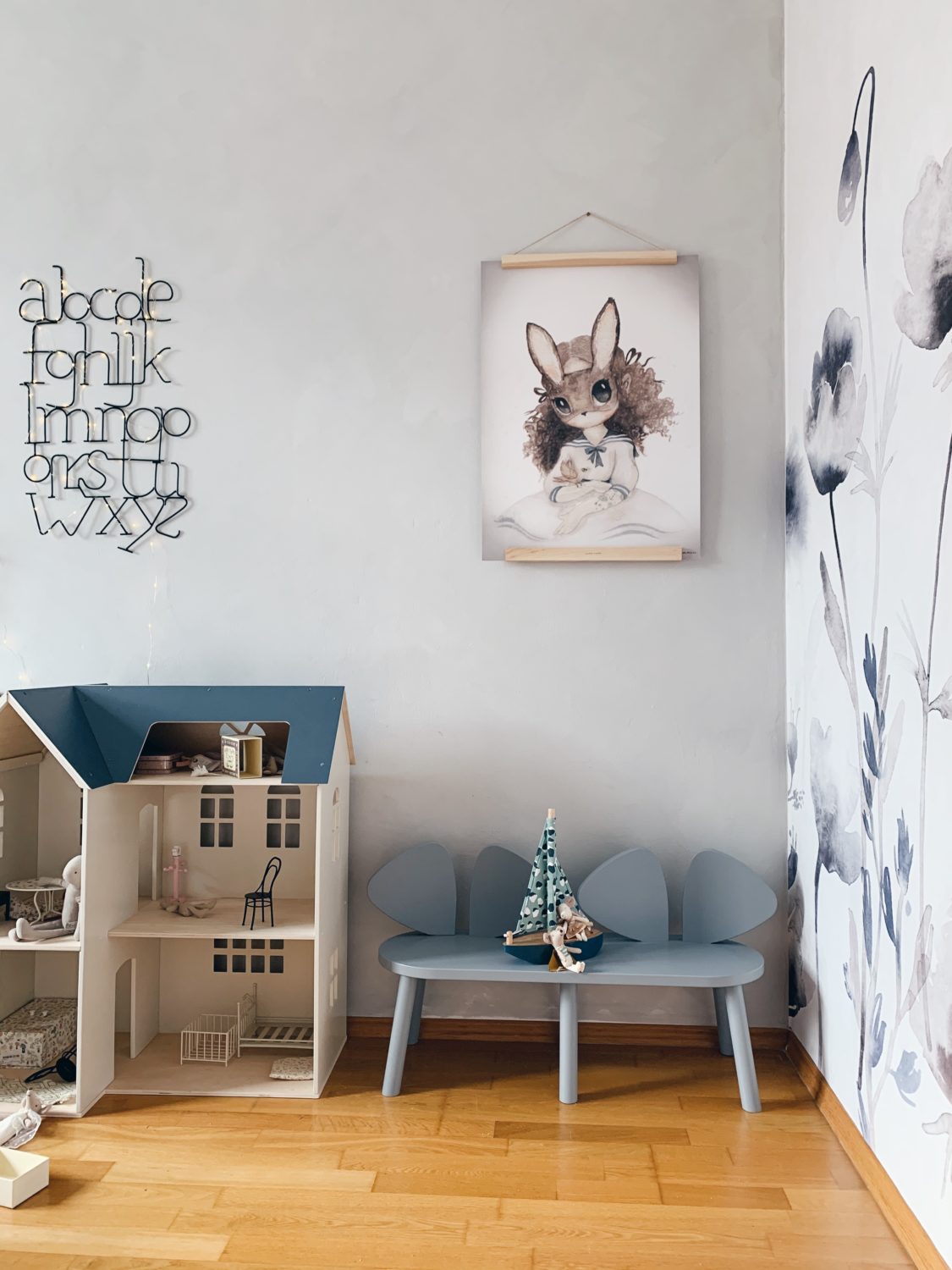Objavila sam nedavno IGTV kako moj Ivan postavlja tapetu u Amelieinom kutku sobe. Baš je bio dobar feedback, vidim da vam se takve stvari sviđaju, da u njima pronalazite inspiraciju i to mi je beskrajno drago. Kako sam napravila još dosta lijepih fotki taj dan, odlučila sam vam složiti i jedan brzinski blog post. Da se nađe za inspiraciju. Sandberg tapete pratim na Instagramu već jako dugo. Baš su prava inspiracija; surađuju s nekim od meni dražih influencera po pitanju uređenja interijera i stiliziranja, imaju prekrasan izbor različitih boja, uzoraka i nijansi. Kvaliteta je odlična, već drugi puta smo postavljali njihove tapete i Ivan ih je stavio bez ikakvih problema. Na njihovoj stranici imate “Tips and advice” gdje možete pronaći odgovore na sva bitna pitanja; od onih koliko rola mi je potrebno? Koji alati su mi potrebni? Kako postaviti tapetu? Do toga da imate opciju naručiti uzorke, pa na taj način riješiti svoje dileme. Naša tapeta je iz Kids kolekcije zove se “Morängen Blue”, a inspirirana je livadom na kojoj raste najdivnije poljsko cvijeće. Cvijeće je prepušteno da se uzdiže i raste u visinu kako bi stvorilo osjećaj da sa nalazimo na prostranstvu velike livade;