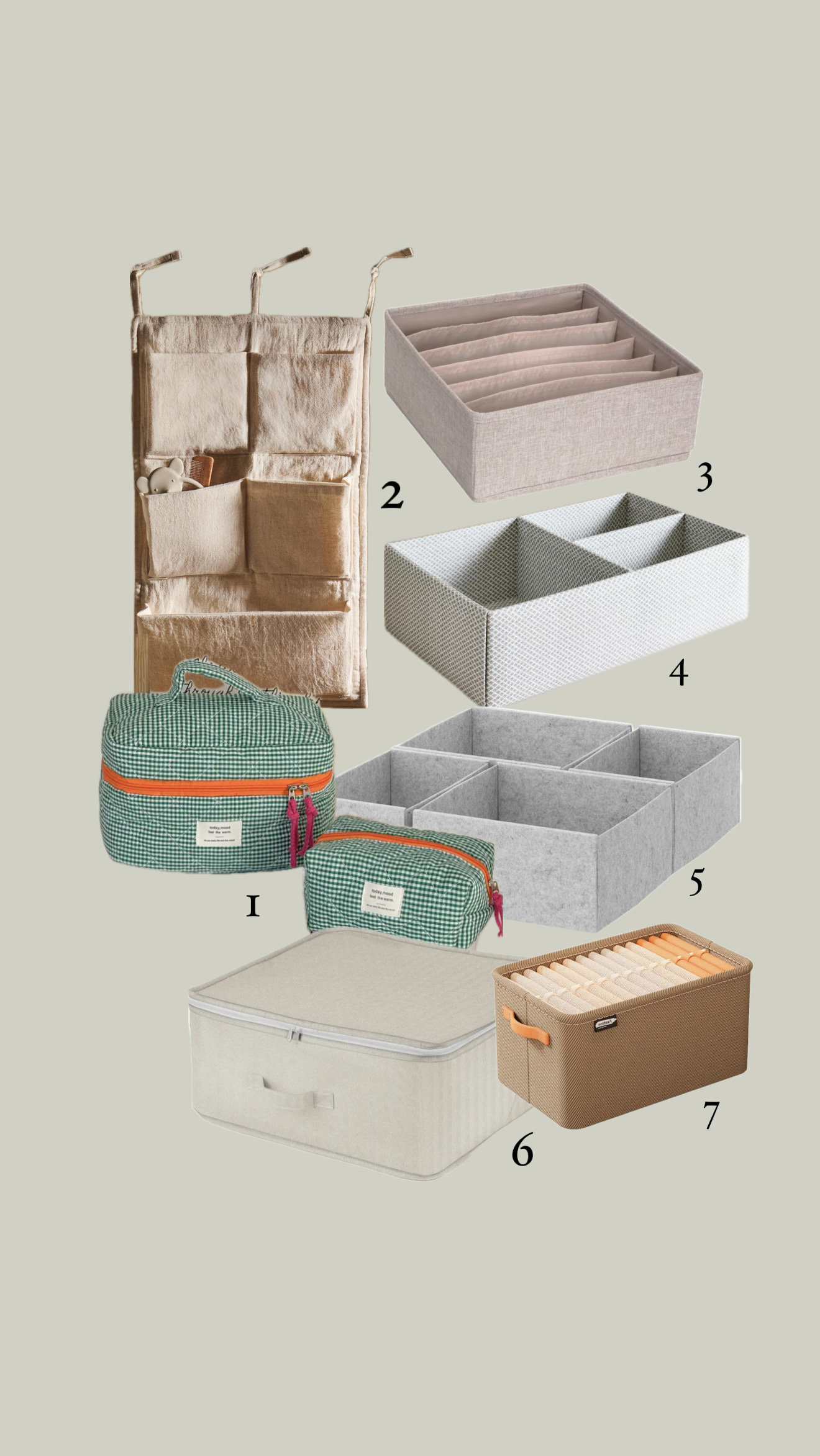 - 1. Platneni neseser – Temu 2. Dječji platneni organizator za ormar – Zara home 3. Platneni organizator za ladice – Bonami 4. Dječji platneni organizator za pelene – Zara home 5. Platnene kutije za organizaciju ladice – Ikea 6. Kutija za skladištenje – Bonami 7. Spremnik za pohranu od tkanine – Temu