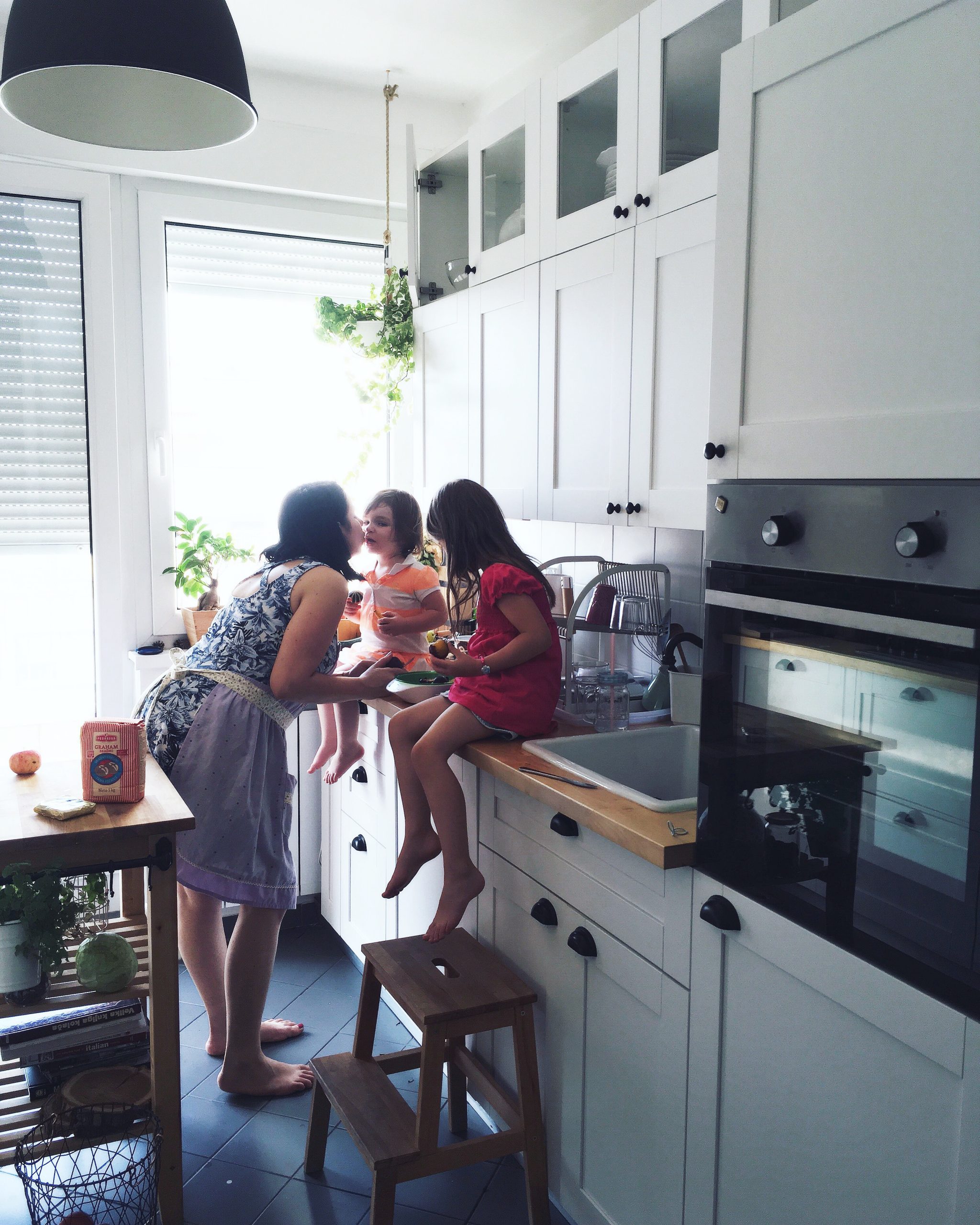 Ja sam se ovaj put iskušala u pikantnoj crostati. Moram priznati da sam mislila da će mi tekstura tijesta ispasti kompaktnija, no s druge strane svako zajedničko druškanje i pečenje kolača s mojim djevojčicama meni je uspjeh. Ne znam da li ste zaljubljenik u začine, ali ako jeste, onda je što se tiče mirisa, ovaj zavodljivi miks definitivno za vas. Cimet, lovor, papar, med, klinčići, muškatni oraščić… Divno! Čak me malo podsjeća na božićne medenjake pa ako i nemate sve te sastojke, slobodno se poslužite već gotovim miksom začina iz vrećice. Amelie se uvijek posebno razveseli kad je tijesto u pitanju jer ima naravno svoj pribor ( među kojima mi je najslađi mali kalup za kolače) i baš mi je ponekad žao što ne radim kolače malo češće. Ali toliko volim slatko da bih tada bila još trodupla, vjerujte mi. Ovako vodim borbu s kilogramima, a kako bi tek bilo tada!